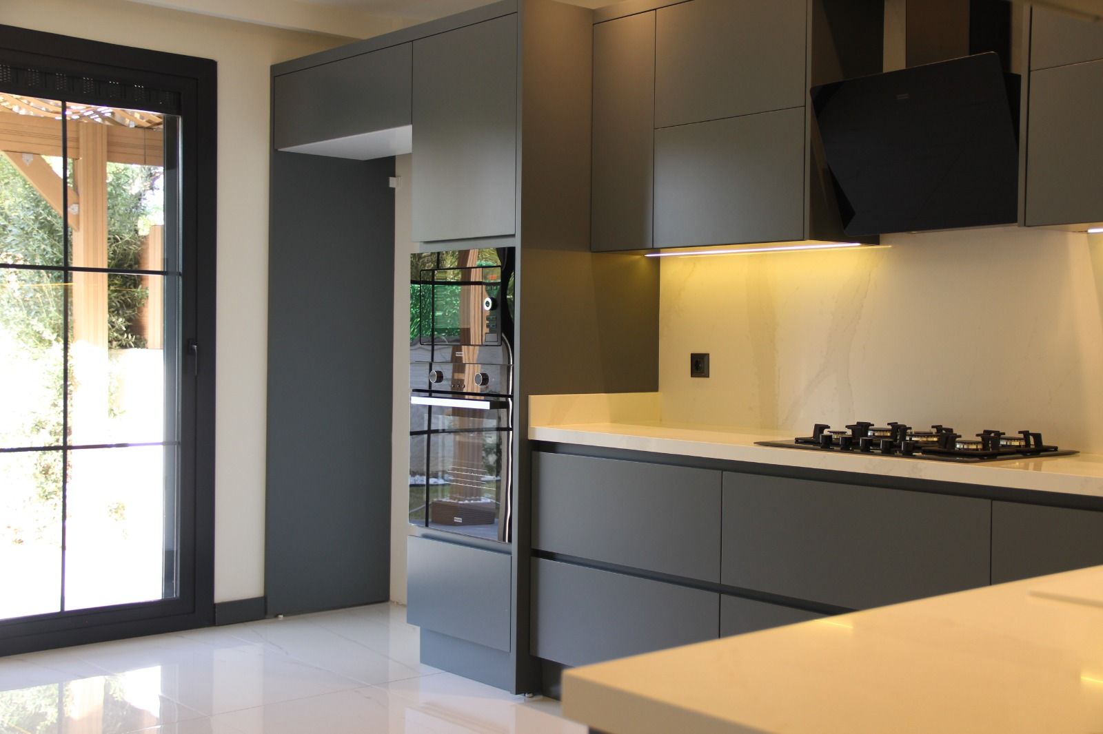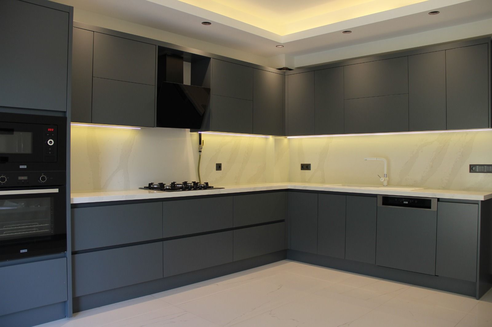 (ocak, fırın, davlumbaz, mikrodalga fırın, bulaşık makinesi, eviye ve bataryalar)