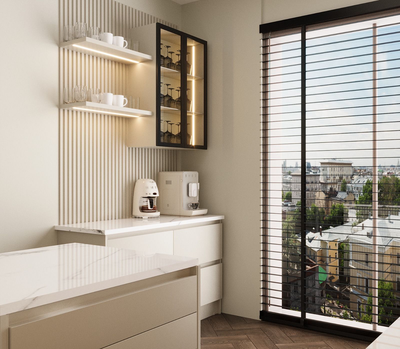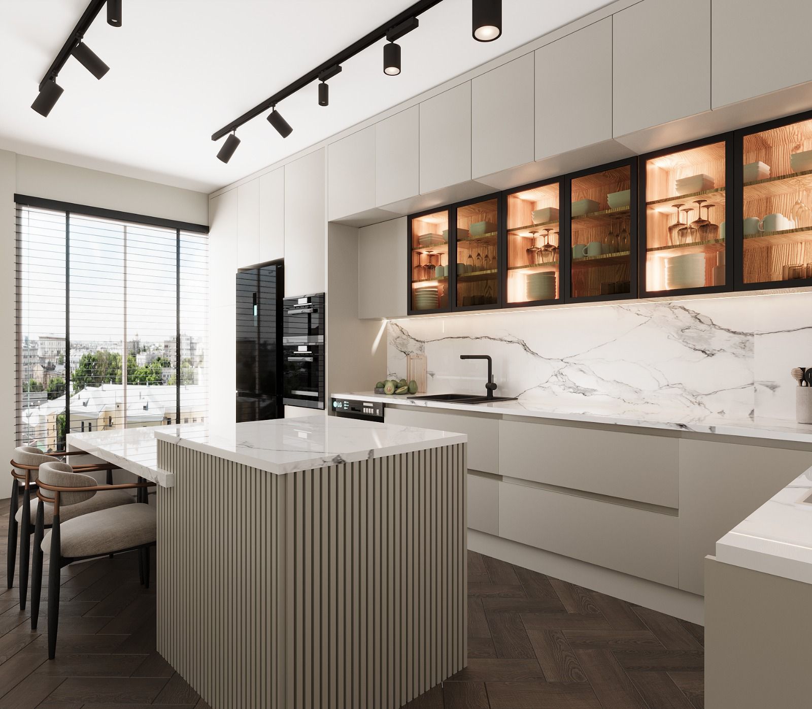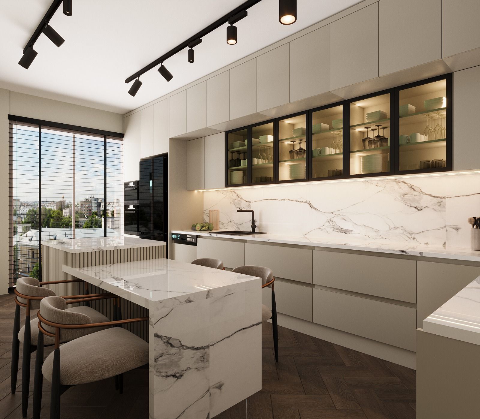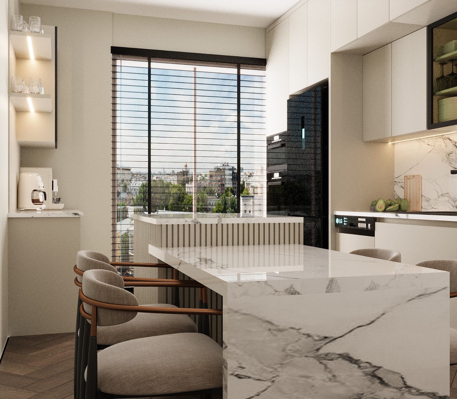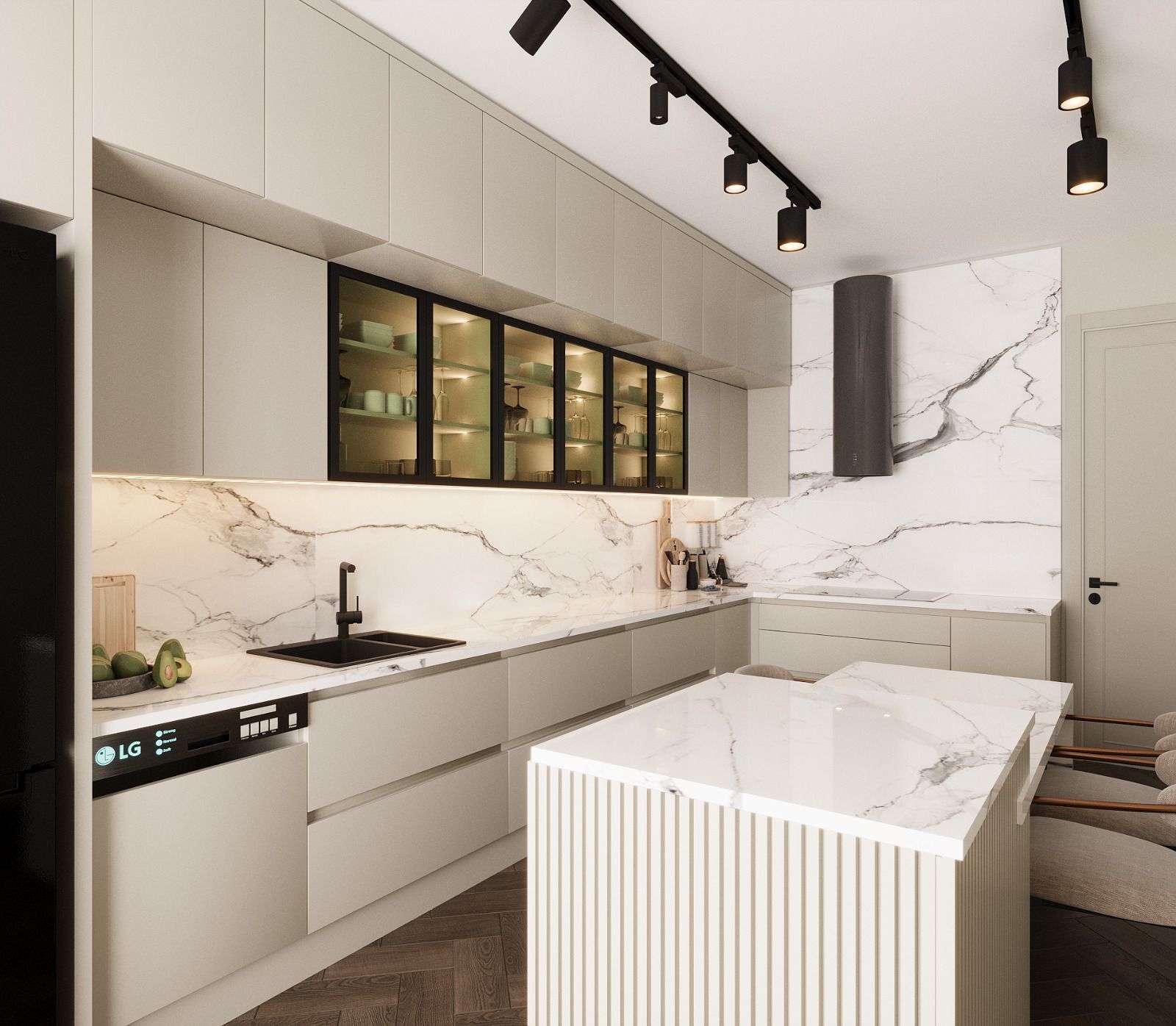 (ocak, fırın, davlumbaz, mikrodalga fırın, bulaşık makinesi, eviye ve bataryalar)